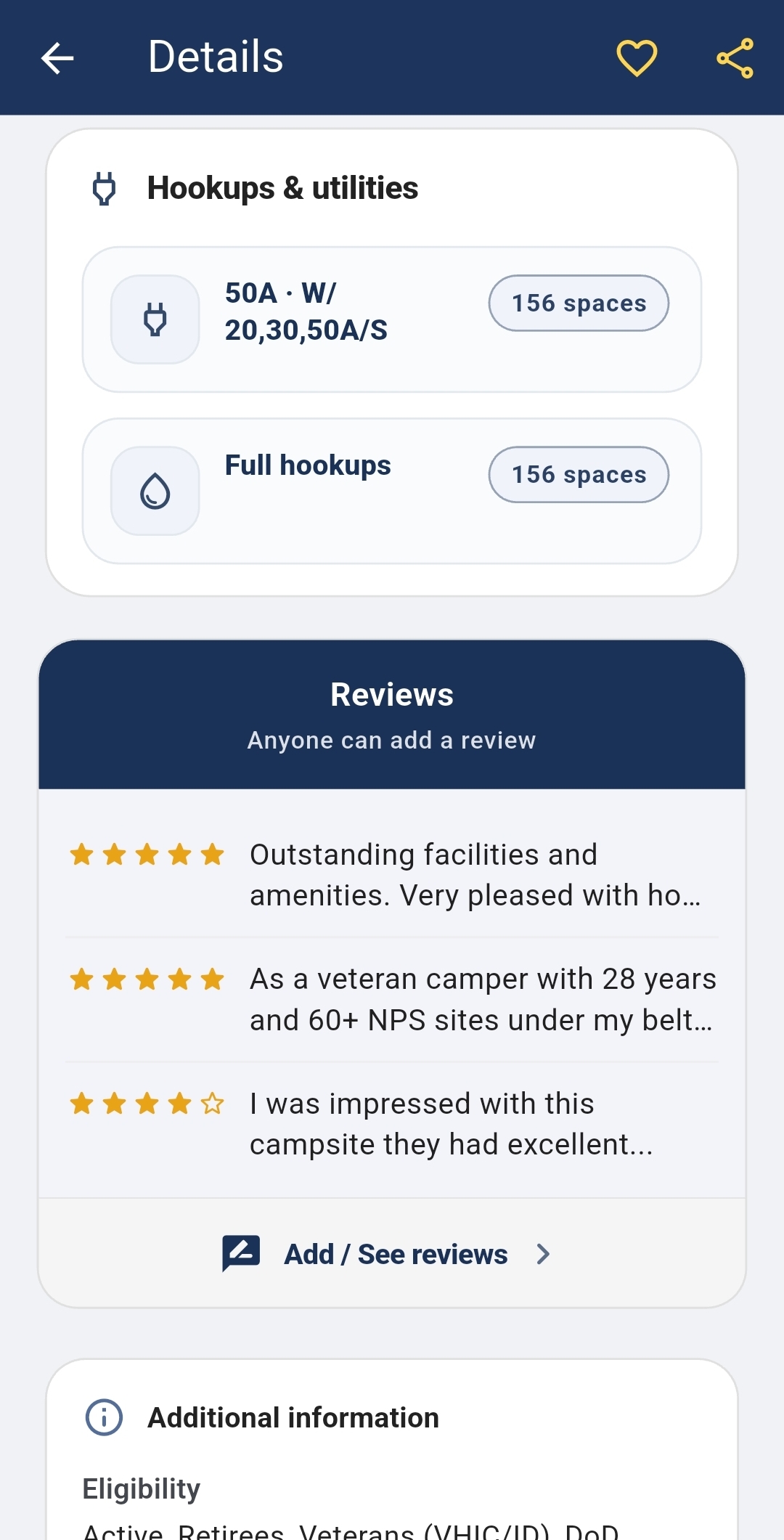 No clutter. Just the information military campers actually need.